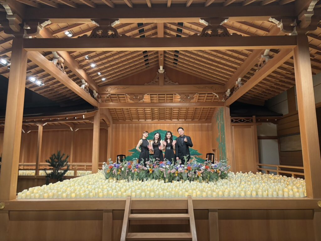 つぶやき 観世能楽堂でキャンドルライトコンサートでした。 2026.02.25初めて足袋を履いて演奏しました👍銀座にある観世能楽堂。とても良いところでした。良い経験でした👍とても幻想的。素敵。満席のお客様♪ありがとうございました!