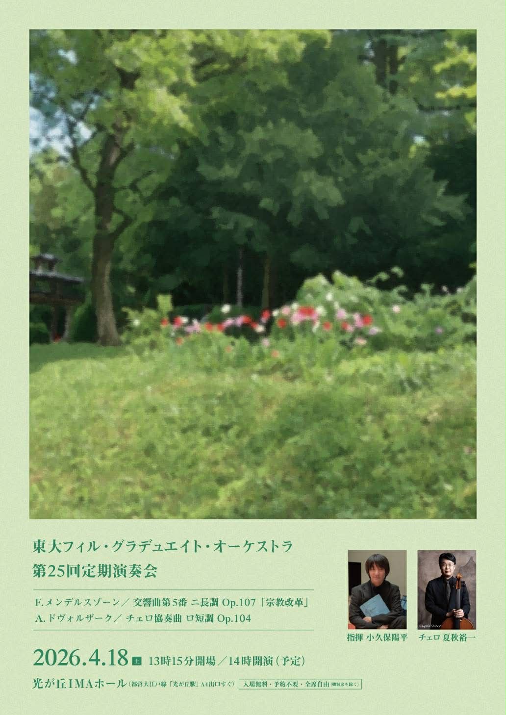 つぶやき 演奏会のお知らせ4/18ドボコン 2026.02.254/18(土)14:00開演。光が丘IMAホール(都営大江戸線 光が丘駅すぐ)。入場無料。東大フィル・グラデュエイト・オーケストラさんとドヴォルザークのチェロ協奏曲を共演させていただきます♪楽しみです。頑張ります。手帳にメモよろしくお願いいたします!